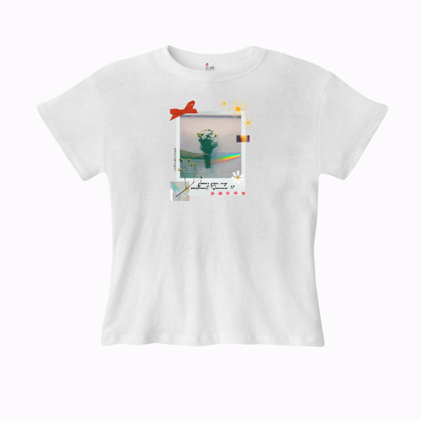 The Flowers From My Sweetheart Tee is made using a semi sheer 100% airy slub cotton that gets softer and better with every wear. This style features a once beautiful, now faded, still treasured bouquet across the chest, with ELPIS signature details.