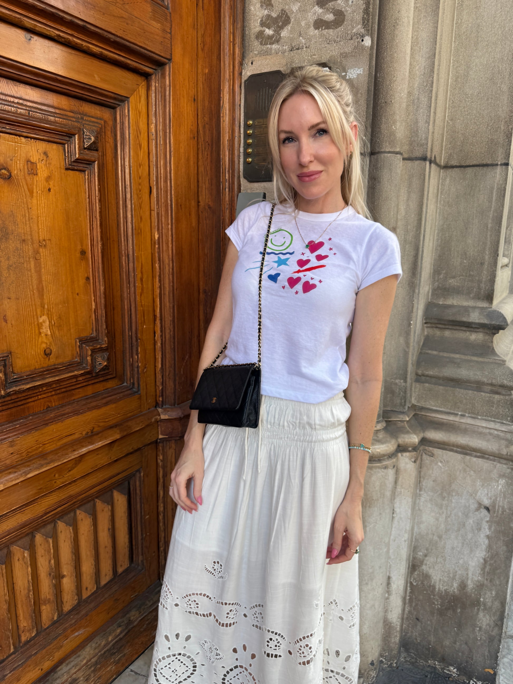 The Happy Tee is made using a semi sheer 100% airy slub cotton that gets softer and better with every wear. This style depicts hand drawn stylized reminders to choose joy in a variegated color-way, with ELPIS signature details.